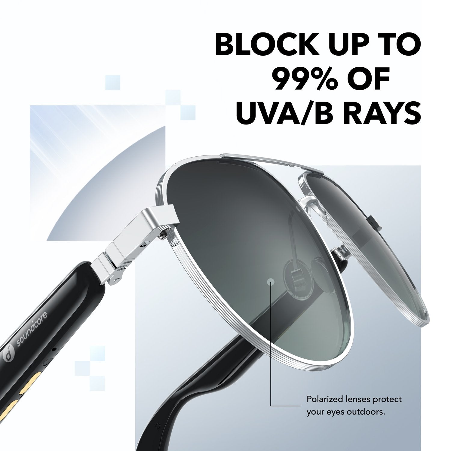 - Customizable Audio Smart Glasses: Soundcore Frames has a detachable front frame to allow you to mix and match from a wide range of styles. To protect your eyes, the polarised lenses block up to 99% of UVA/B rays and are scratch- and shatter-resistant.
