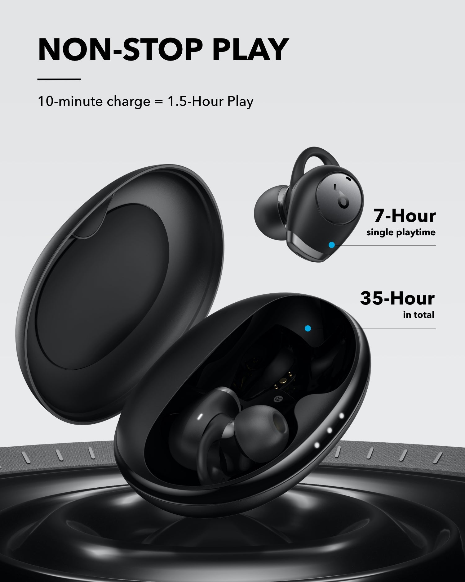 - 35-Hour Playtime: Get 7 hours’ listening on a single charge of the wireless earbuds, then use the compact charging case to recharge them another 4 times. That’s at least 2-weeks of commuting on one charge.