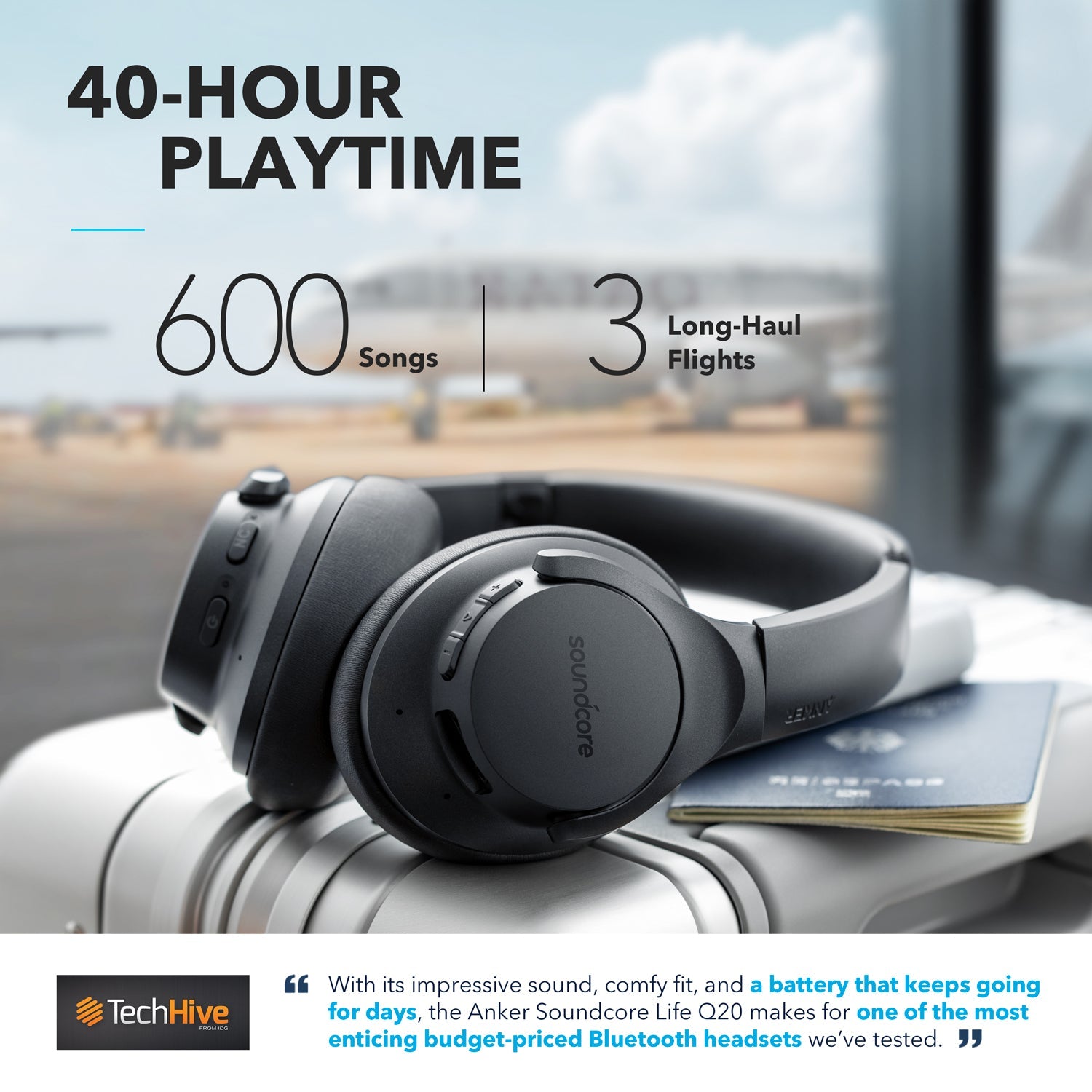 - 40-Hour playtime: Up to 40 hours of non-stop playtime in wireless active noise cancellation mode (at 60% volume) is extended to an enormous 60 hours in standard music mode. A single charge gives you enough juice to listen to over 600 songs or soundtrack multiple long haul flights. And when you’re in a rush, charge life Q20 active noise cancelling headphones for 5 minutes and get 4 hours of listening.